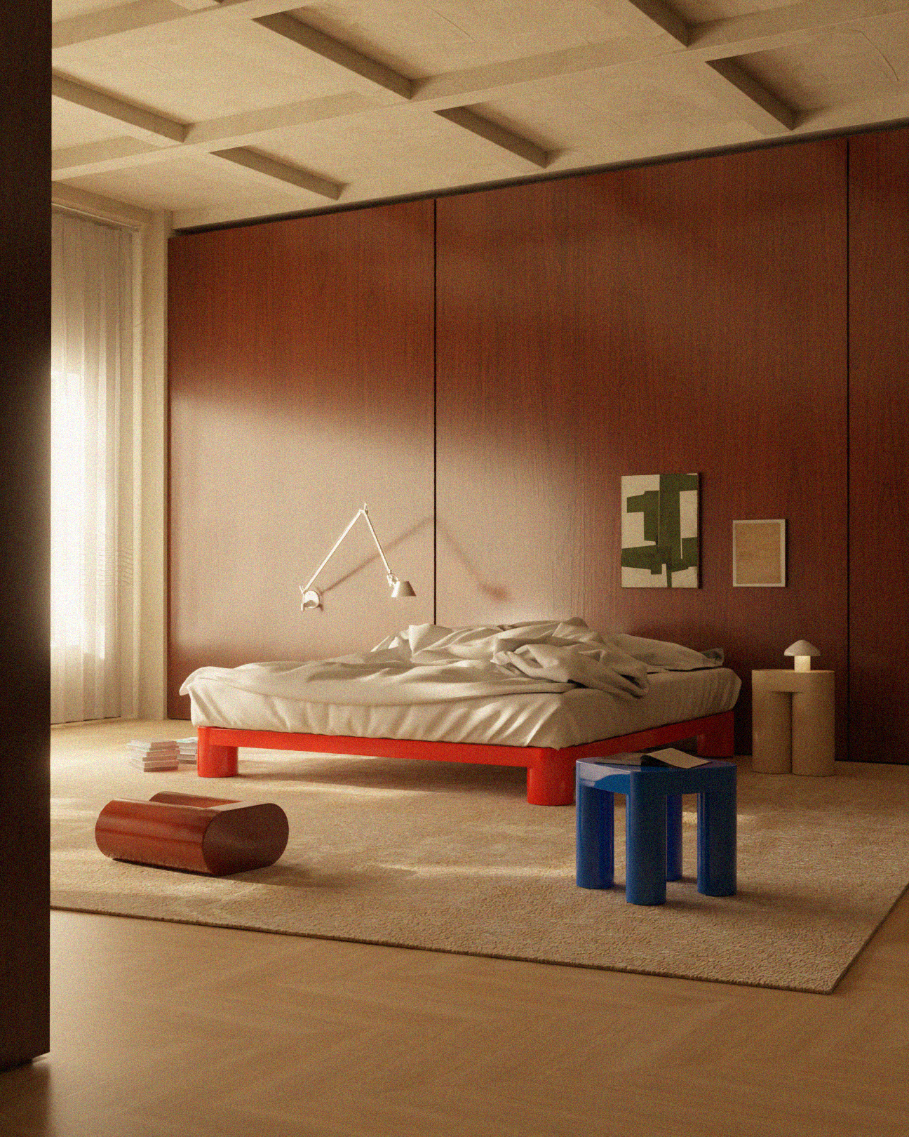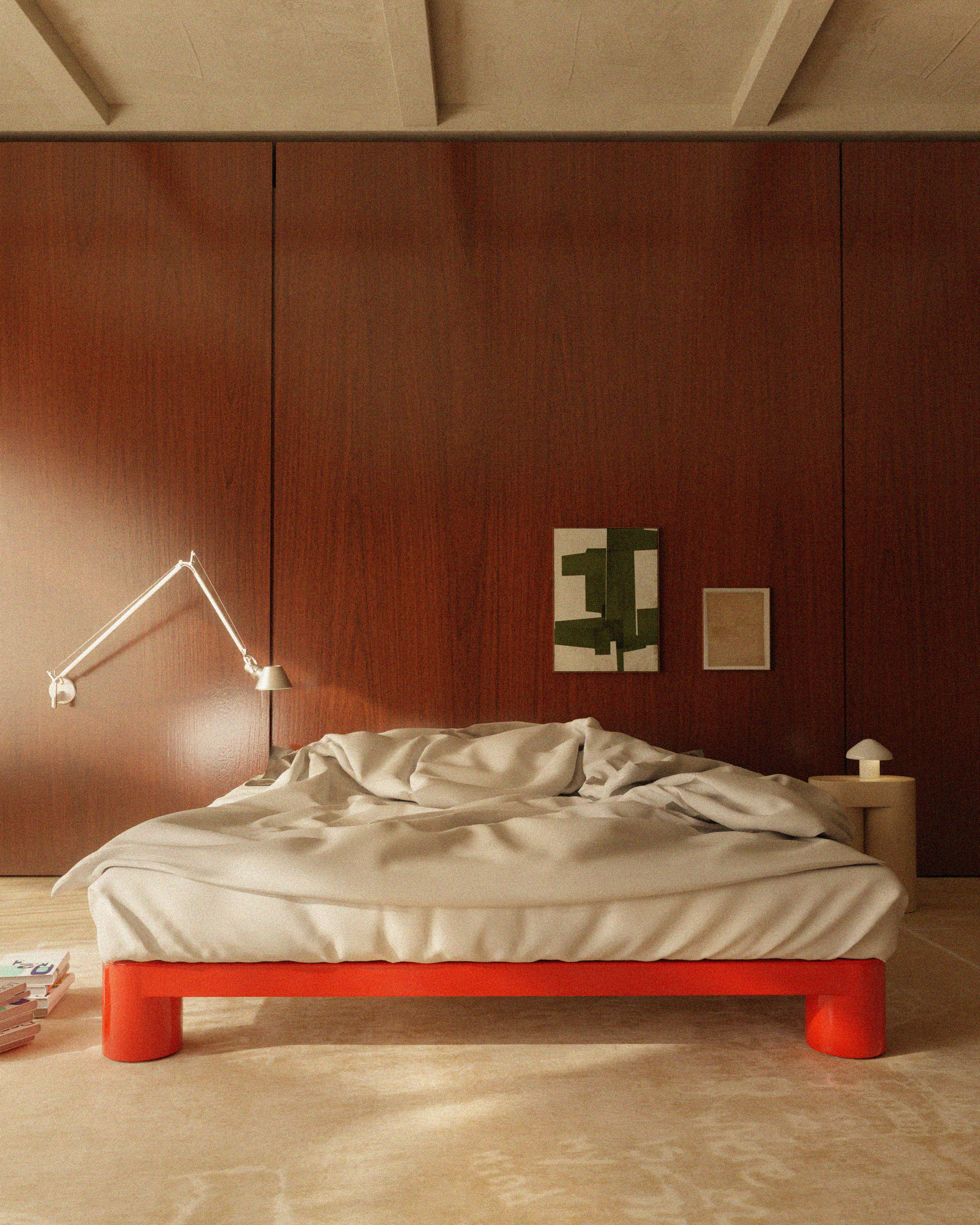 The ‘Float’ bed frame has a balanced combination of two elements that come together forming a sturdy and simple frame with chubby, soft legs. The clean and simple design of the Float goes well with other bedroom furniture and fits perfectly in any bedroom.